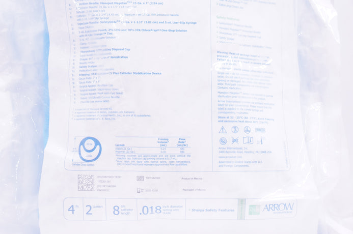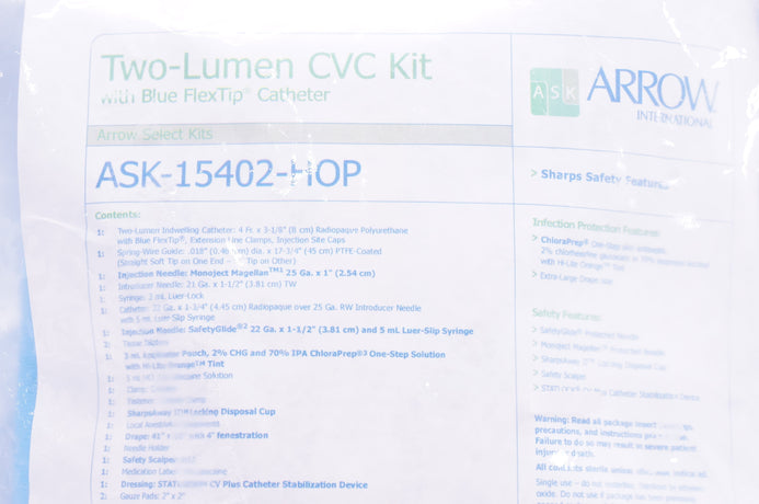 - Arrow ASK-15402-HOP Two-Lumen CVC Kit 4Fr 2 Lumen 8cm .018inch (x)