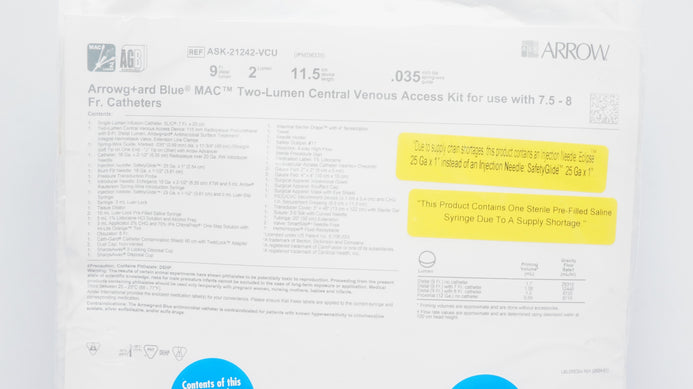 - Arrow ASK-21242-VCU Arrowgard Blue MAC Two-lumen Central Venous access Kit