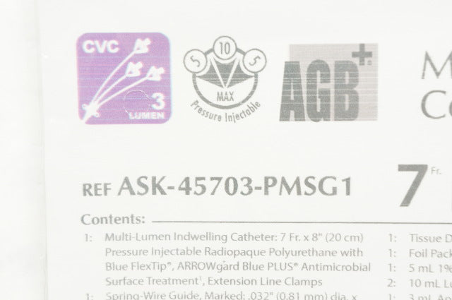 - Arrow ASK-45703-PMSG1 Multi-Lumen Central Venous Catheterization Kit 7Fr.