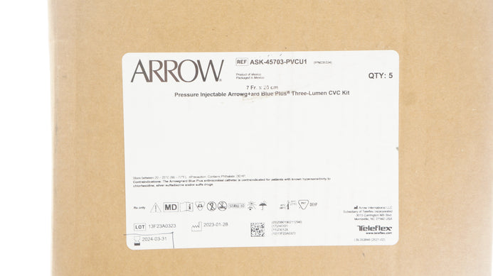 Arrow ASK-45703-PVCU1 Pressure Injectable Three-Lumen CVC Kit 7Fr x 20cm (x)