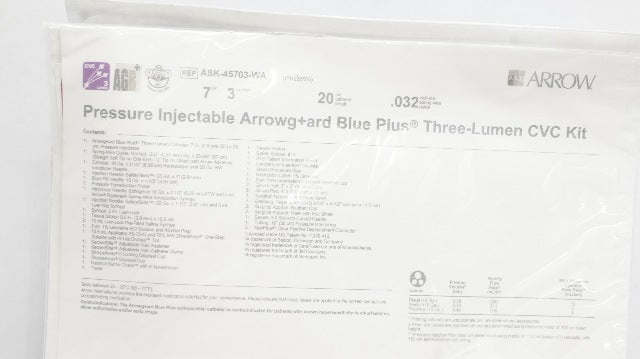 Arrow ASK-45703-WA Pressure Injectable Arrowg+ard Blue Plus Multi Lumen CVC Kit 3 Lumen 7Fr. x .032inch x 20cm