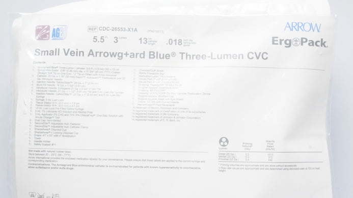 - Arrow CDC-26553-X1A Arrowgard Blue Pediatric Multi-Lumen CVC Kit 5.5Fr (x)