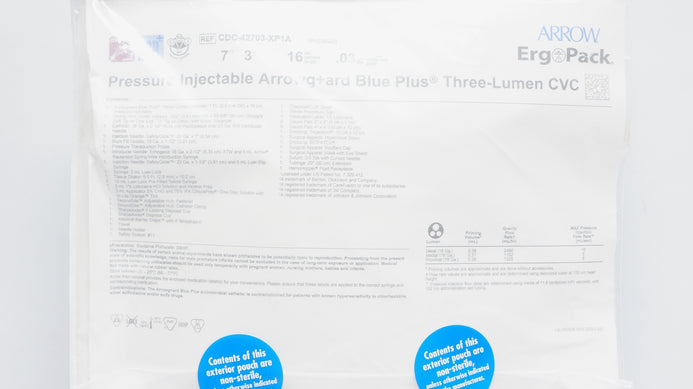 - Arrow CDC-42703-XP1A Multi-Lumen CVC Kit 3 Lumen 7Fr. x 16cm x .032inch (x)