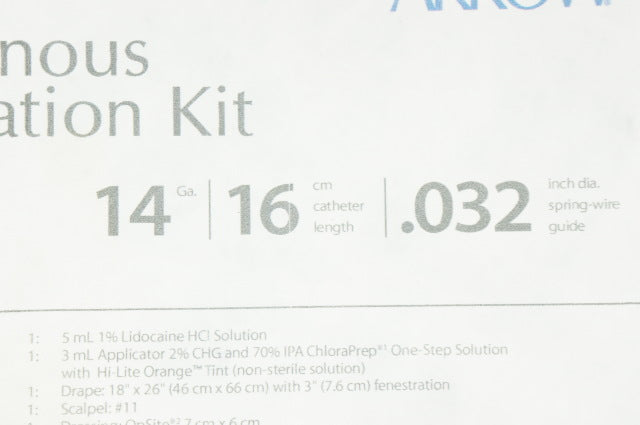 - Arrow CK-04711 Central Venous Catheterization Kit 14Ga x 16cm x 0.032inch (x)