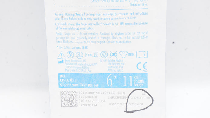 - Arrow CP-07611 Super Arrow-Flex PSI Set W/Integral Hemostasis Valve 6Frx4-3/8nch