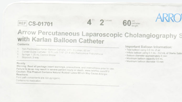 - Arrow CS-01701 Laparoscopic Cholangiography Set Karlan Balloon Cath.4F x 60cm