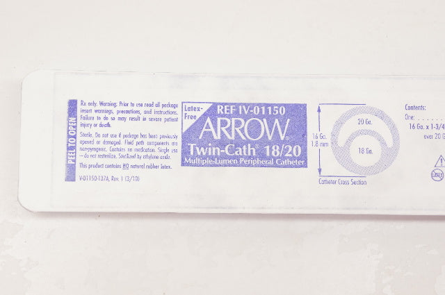 - Arrow IV-01150 Twin-Cath 18/20 Multiple-Lumen Peripheral Cath. 16Ga. x1-3/4inch