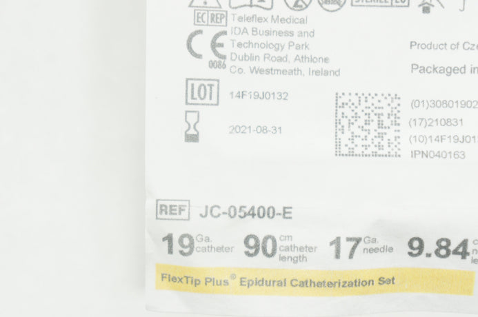 - Arrow JC-05400-E Teleflex FlexTip Plus Epidural Catheterization Set 19Ga x 90cm