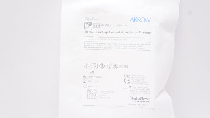 - Arrow LR-05501 10mLLuer-Slip Loss of Resistance Syringe