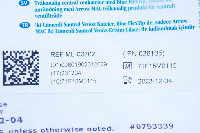 - Arrow ML-00702 Two-Lumen Central Venous Cath. 7Fr x 2Lumen x 16cm