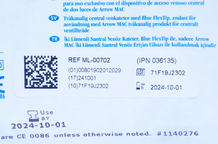 - Arrow ML-00702 Two-Lumen Central Venous Cath. with Blue FlexTip 7Fr. x 16cm