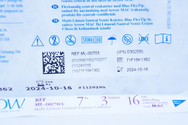 - Arrow ML-00703 Multi-Lumen Central Venous Cath. 7Fr. x 16cm