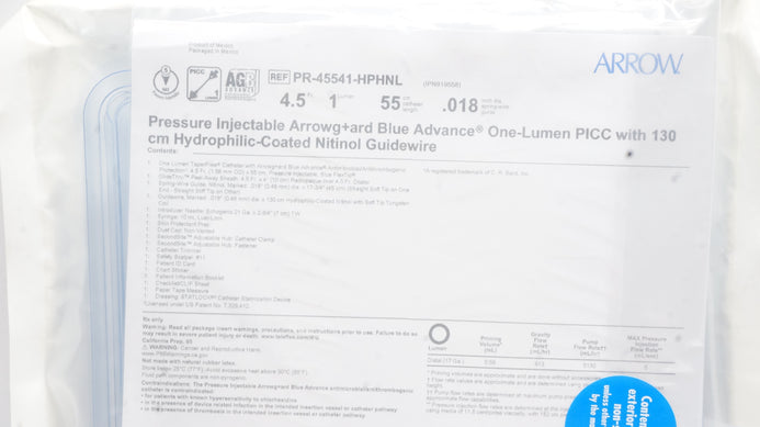 - Arrow PR-45541-HPHNL Pressure Injectable PICC w/ Nitinol Guidewire (x)