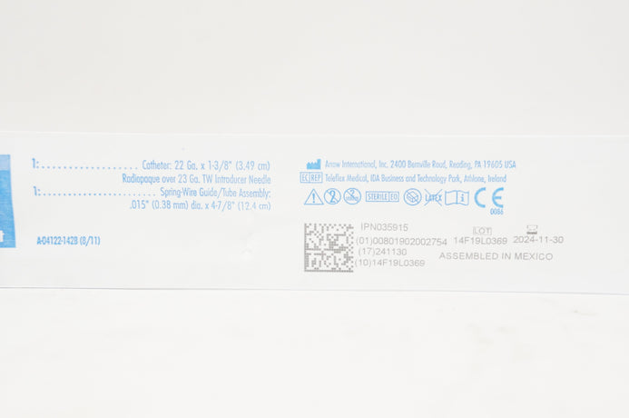 - Arrow RA-04122 Radial Artery Cath. Set 22Ga x 1 3/8 inch (x)