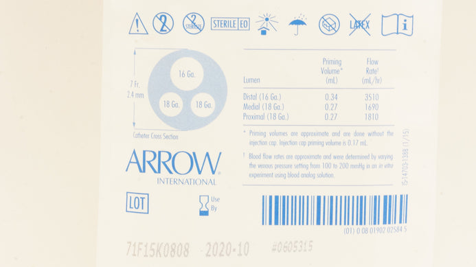 - Arrow SS-14703 Multi-Lumen Central Venous Cath. w/Blue FlexTip 7Fr (x)
