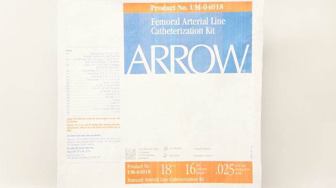 - Arrow UM-04018 Femoral Arterial Line Cath. Kit 18Ga x 16 cm x .025 inch (x)