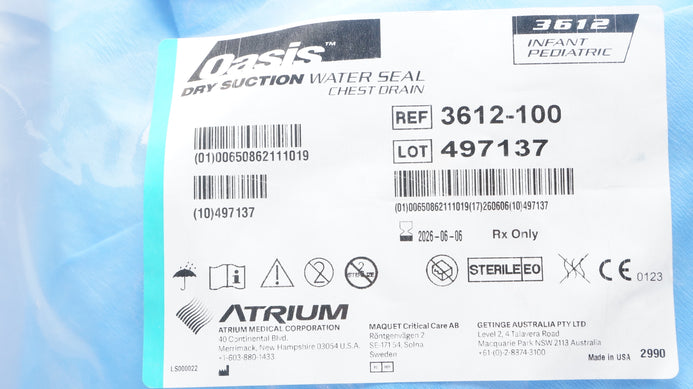 - Atrium 3612-100 Oasis Dry Suction Water Seal Chest Drain Infant Pediatric
