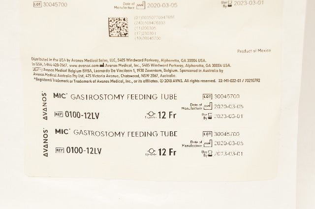 - Avanos 0100-12LV Mic Gastrostomy Feeding Tube 12Fr x 2-3ml