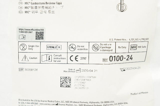 - Avanos 0100-24 MIC Gastrostomy Feeding Tube 24Fr 7-10ml