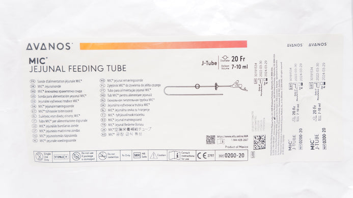 - Avanos 0200-20 MIC Jejunal Feeding Tube 20Fr x 7-10ml