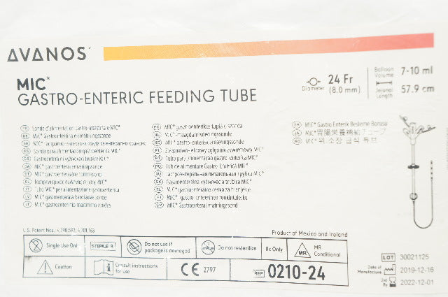 Avanos 0210-24 Mic Gastro-Enteric Feeding Tube 24Fr x 7-10ml x 57.9cm