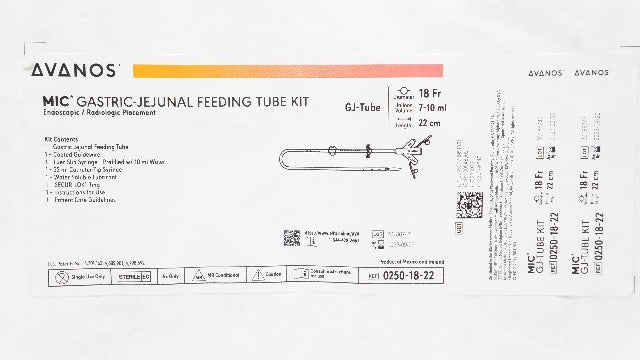 Avanos 0250-16-22 MIC Gastric-Jejunal Feeding Tube Kit 18Fr x 22cm 7-10ml