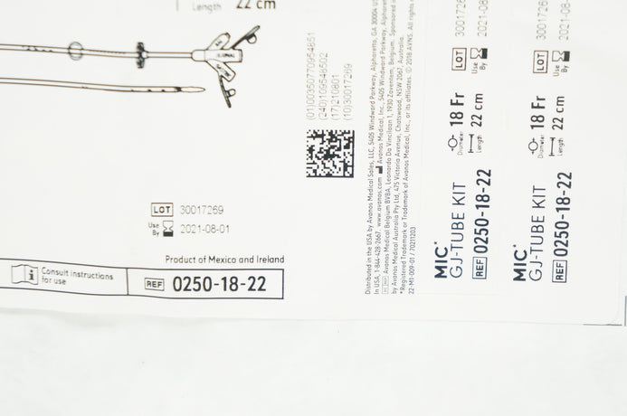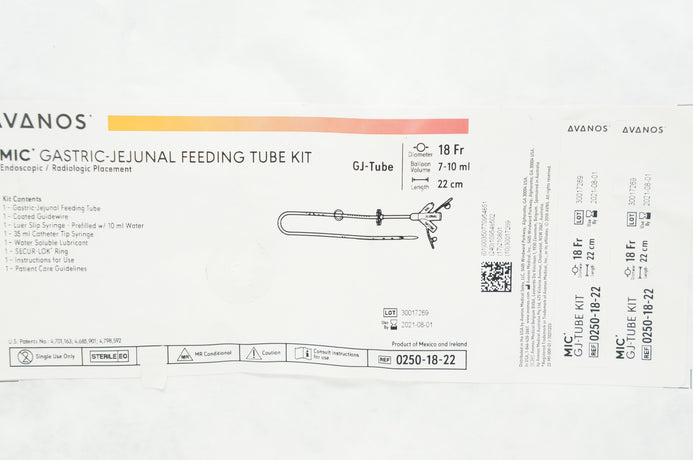 - Avanos 0250-18-22 MIC Gastric-Jejunal Feeding Tube Kit 18Fr 7-10ml 22cm (x)