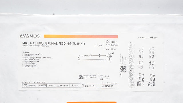 - Avanos 0250-18 MIC Gastric-Jejunal Feeding Tube Kit GJ-Tube 18Fr x 45cm 7-10ml