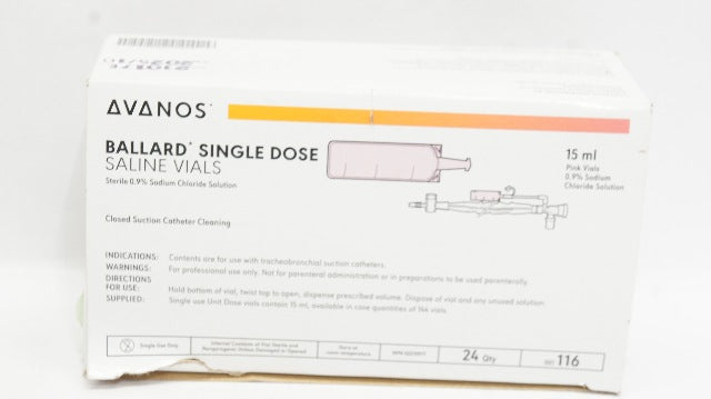 - Avanos 116 Ballard Single Dose, Saline Vials, 09% Sodium Chloride 15ml-Box of 24
