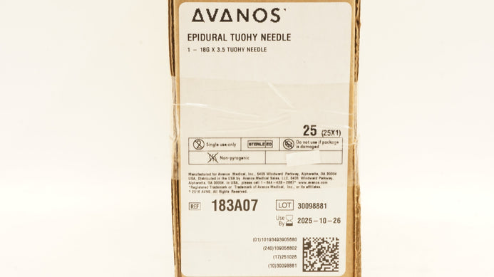- Avanos 183A07 Epidural Tuohy Needle 18G x 3.5 Needle - Box of 25