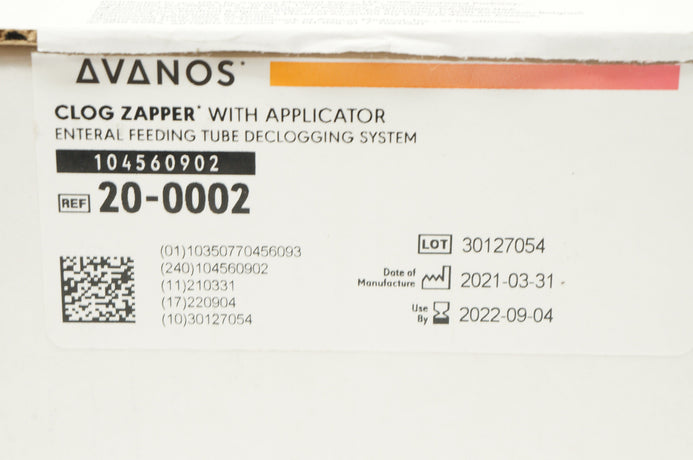 - Avanos 20-0002 Clog Zapper Applicator Enter Feeding Tube Declogging Syst-Boxof10