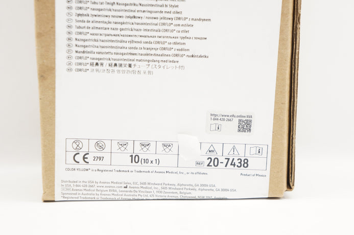 Avanos 20-7438 CORFLO Nasogastric/Nasointestinal Feeding Tube 8Frx109cm-Box of10