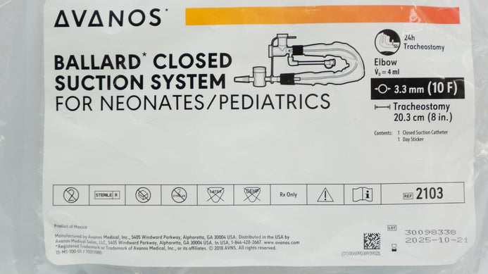 - Avanos 2103 Ballard Closed Suction System, Neonates/Pediatrics 3.3mm x 20.3cm