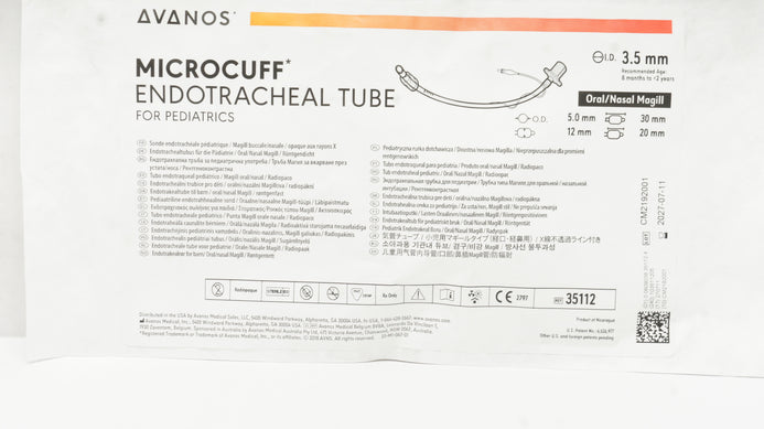 - Avanos 35112 Microcuff Pediatric Endotracheal Tube 3.5mm ID x 5.0mm OD x 12mm