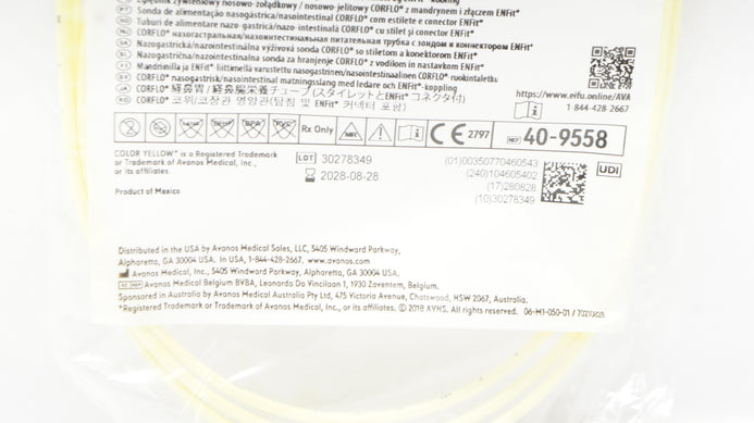 - Avanos 40-9558 Corflo Nasogastric/Nasointestinal Feeding Tube 8Fr 140cm
