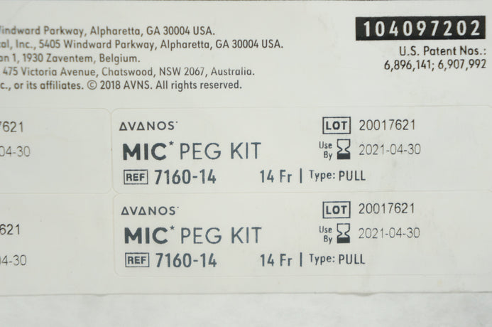 - Avanos 7160-14 MIC Percutaneous Endoscopic Gastrostomy (PEG) Kit 14Fr (x)