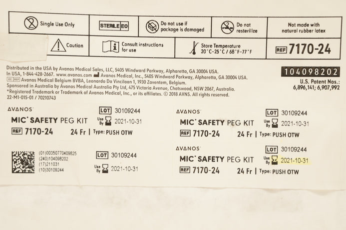 - Avanos 7170-24 MIC Safety Percutaneous Endoscopic Gastrostomy Kit 24Fr