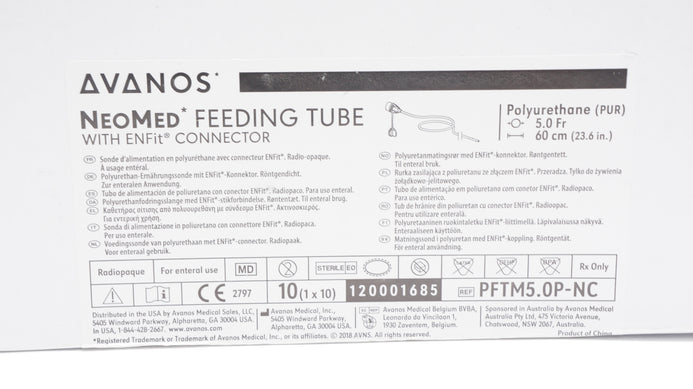 - Avanos PFTM5.0P-NC NeoMed Feeding Tube w/Connector 5.0Fr x 23.6inch - Box of 10