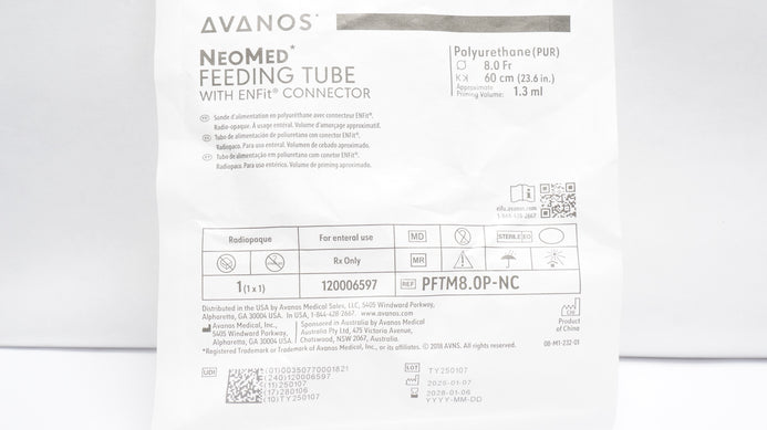 Avanos PFTM8.0P-NC NeoMed Polyurethane Feeding Tube w/EnFit Connector
