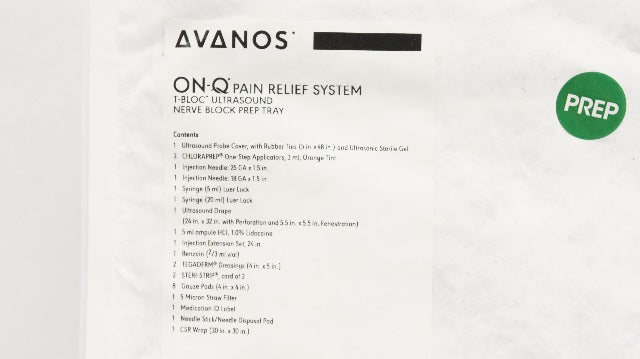 - Avanos TBT02 ON-Q Pain Relief System T-Bloc Ultrasound Nerve Block Prep Tray