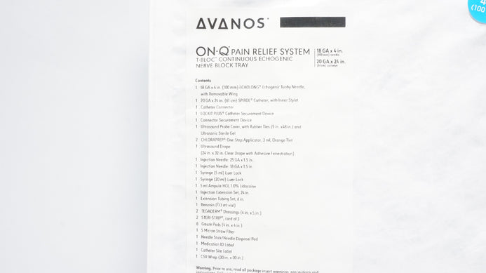 Avanos TBT02100T ON-Q Pain Relief System 18Ga x 4 inch/ 20Ga x 24 inch (x)