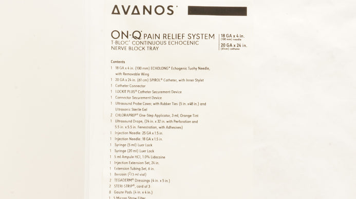 - Avanos TBT02100T ONQ Pain Relief System 18Ga x 4 inch/ 20Ga x 24 inch
