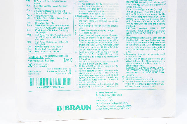 - B.Braun 332082 PERIFIX Continuous Epidural Anesthesia Tray 17Ga x 3-1/2inch (x)