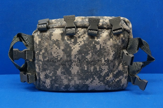Special features: material is made of 1000 denier universal camo with corresponding webbing and hardware; weight: 2lbs.; includes webbing straps; may be wore various ways; the bag will be utilized as a first responder, combat lifesaver, combat aidsmen bag for army medical