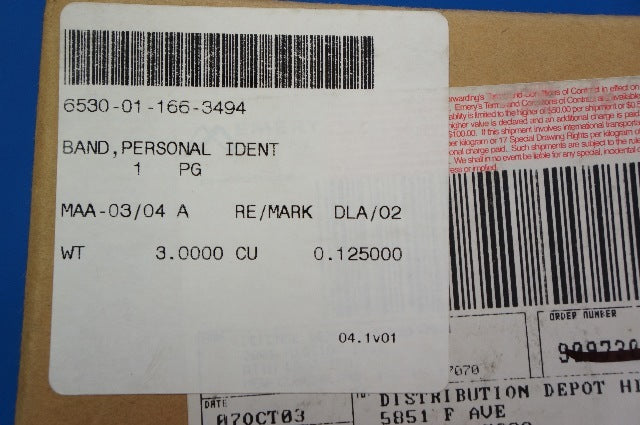Part name assigned by controlling agency: band personal identification adult patient plastic red 250s