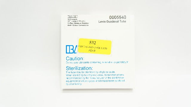 Bard 0005540 X-Ray Opaque Rubber W/Glass Connector Levin Duodenal Tube 18Fr 48In