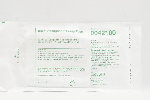 - Bard 0042100 Nasogastric Sump Tube with Radiopaque Stripe Marks 10Fr x 36inch