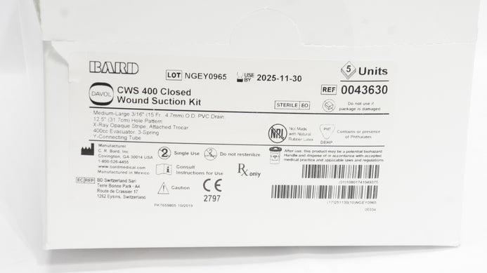 - Bard 0043630 Davol CWS 400 Closed Wound Suction Kit - Box of 5