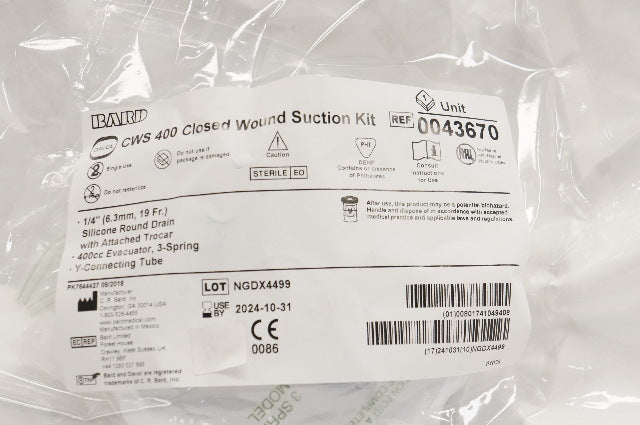 Bard 0043670 CWS 400 Closed Wound Suction Kit