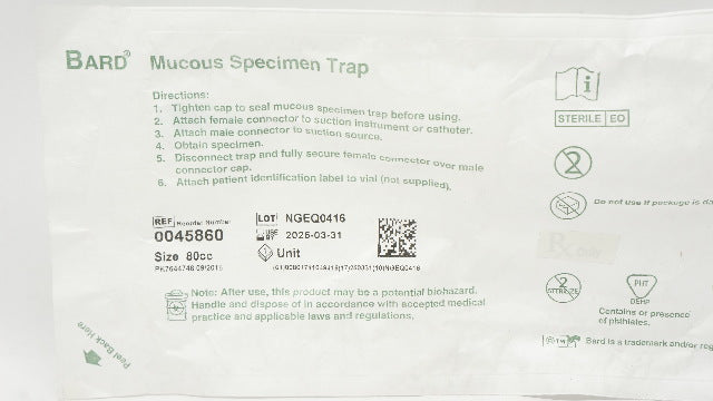 - Bard 0045860 Mucous Specimen Trap 80 CC